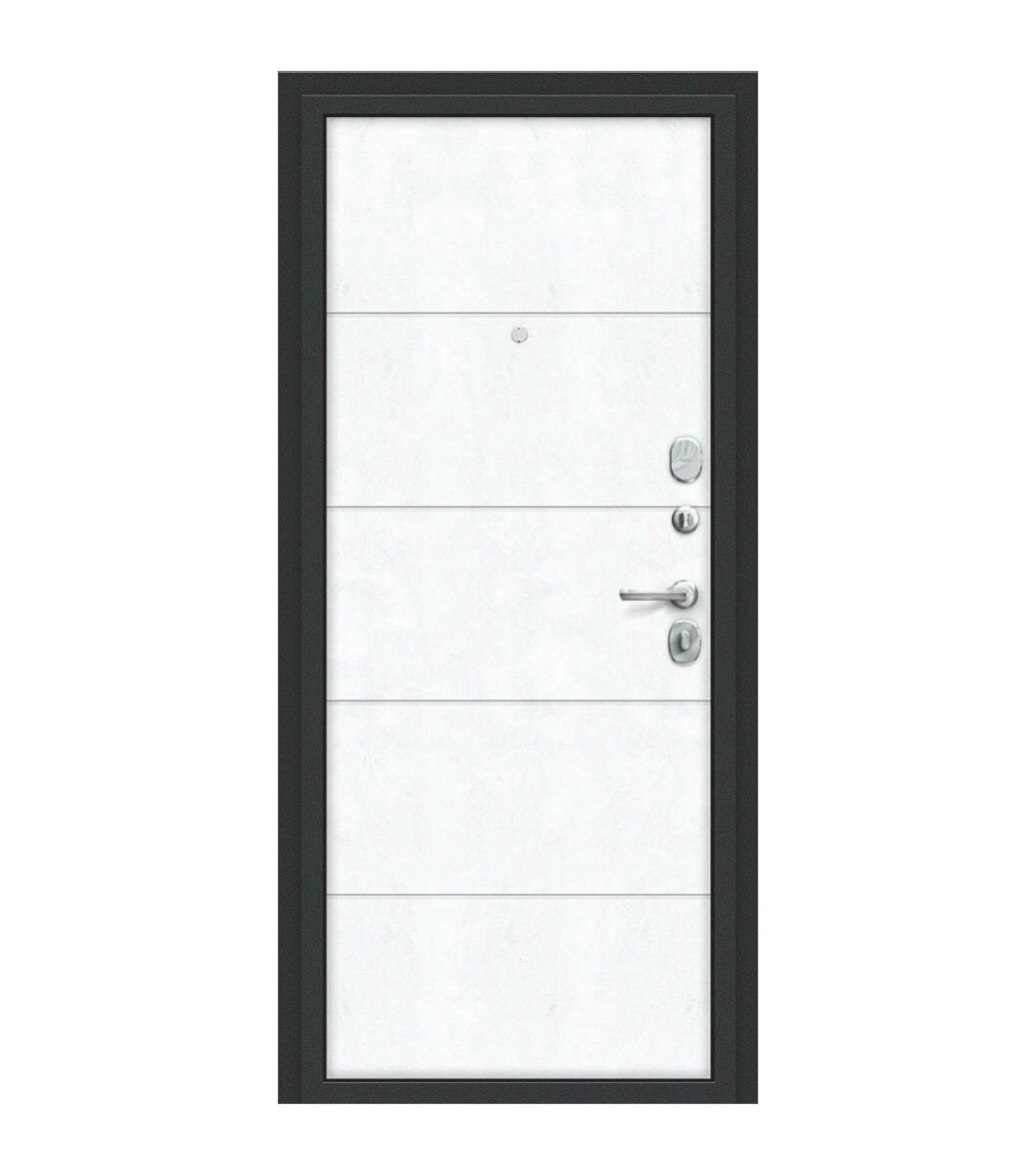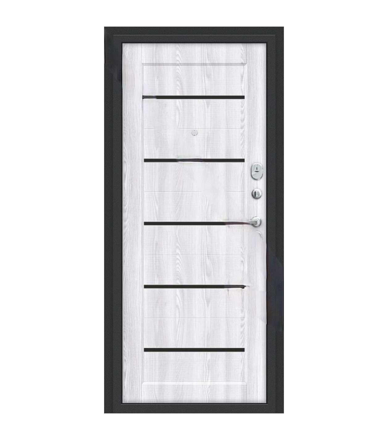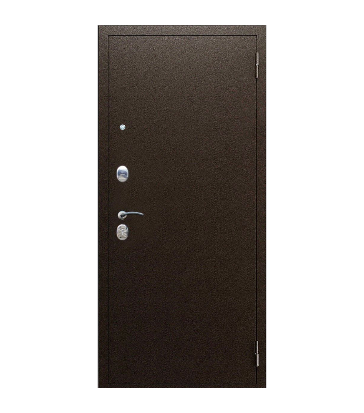 Внутри её конструкции есть специальный слой (как «перемычка»), который разделяет холодный внешний металл и тёплый внутренний. Благодаря этому дверь не покрывается инеем и на ней не появляется конденсат.