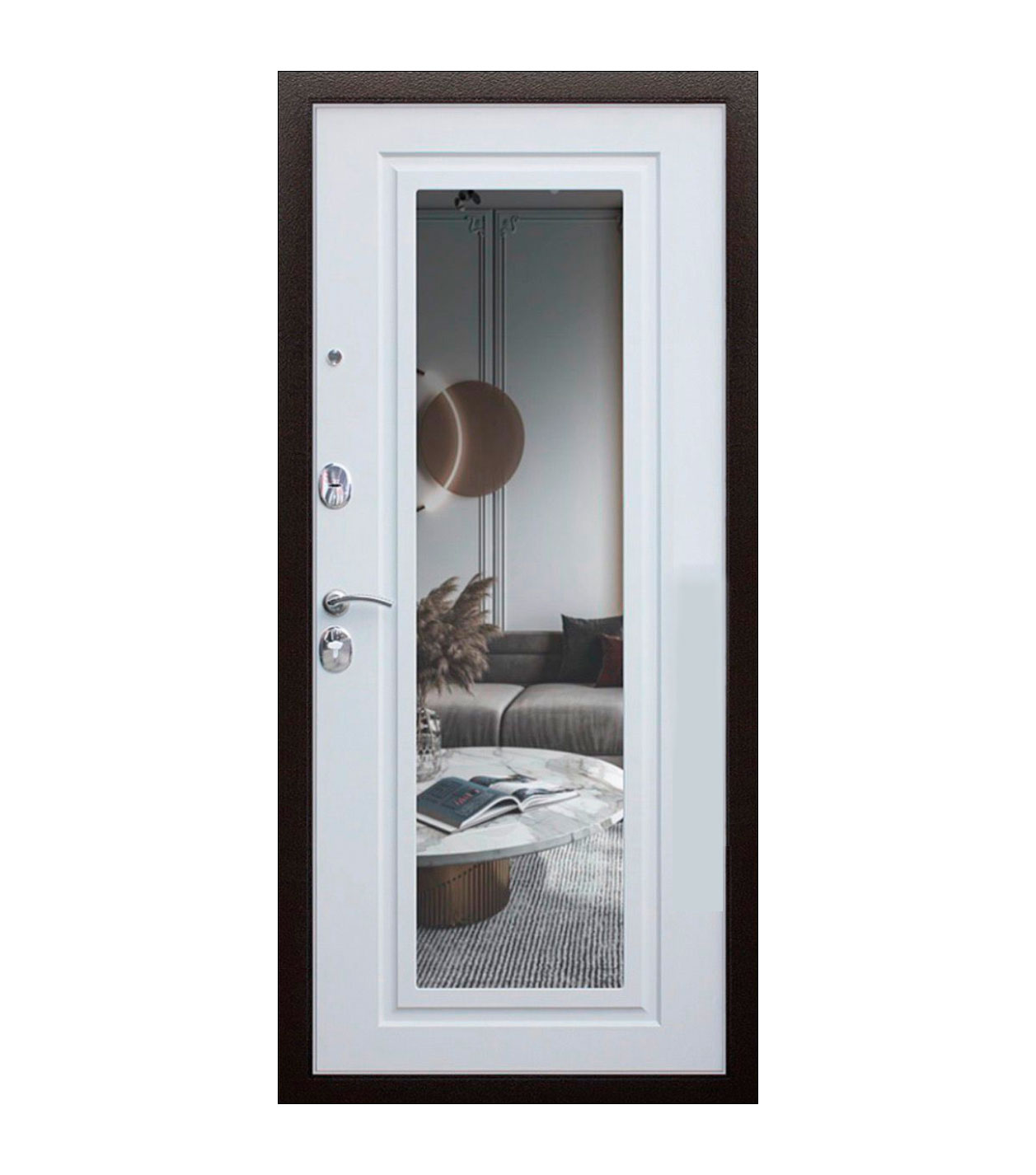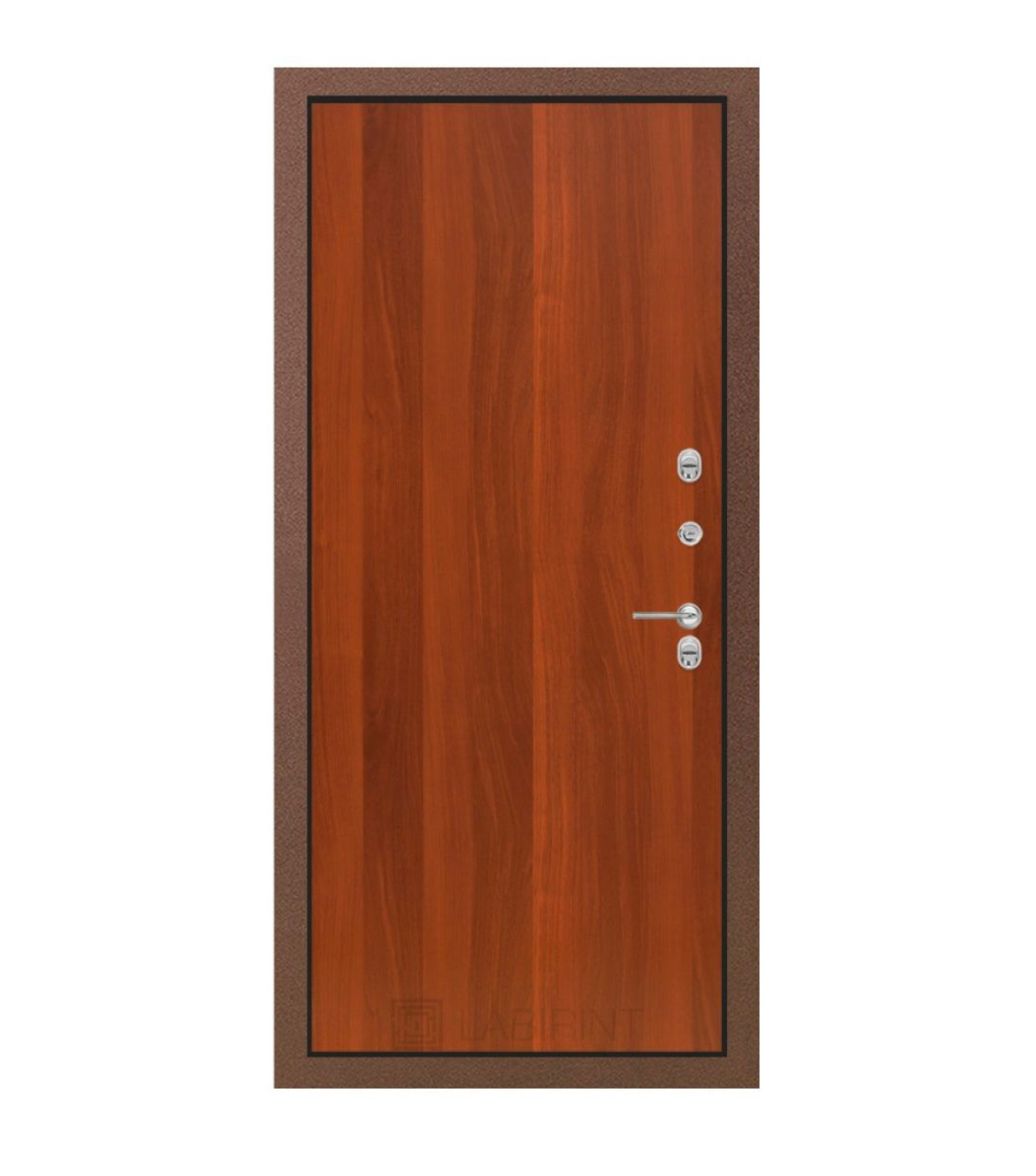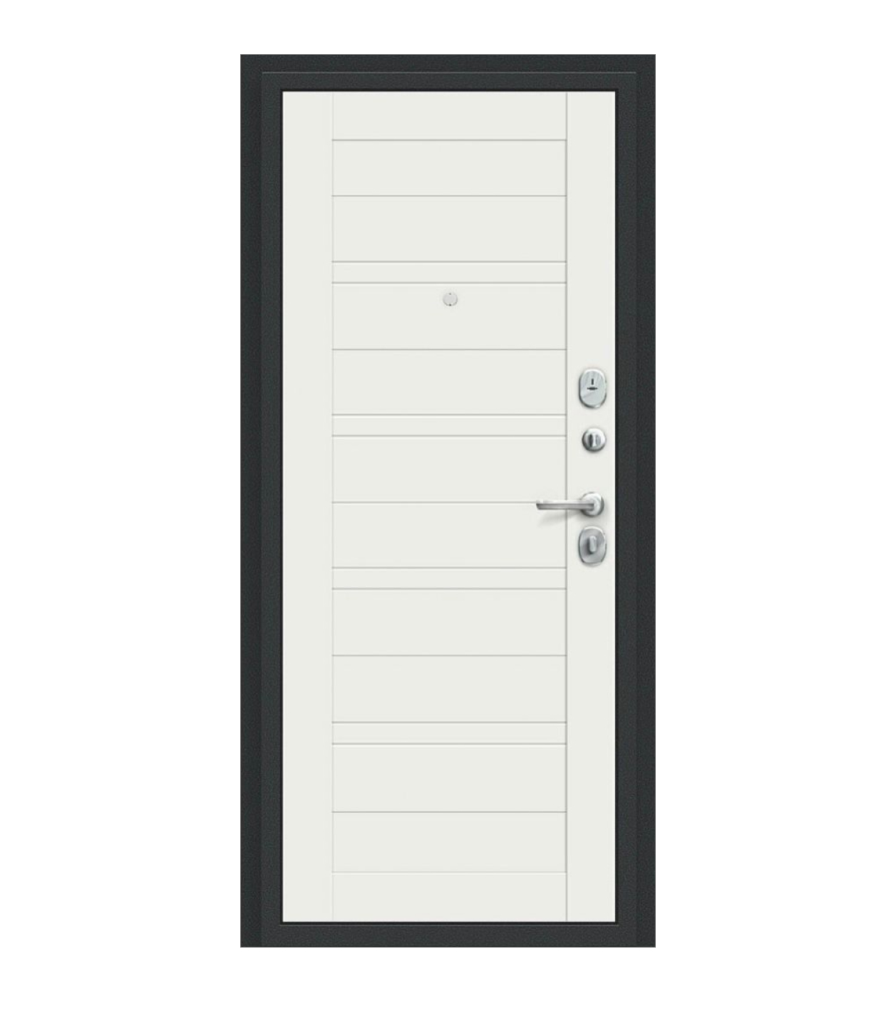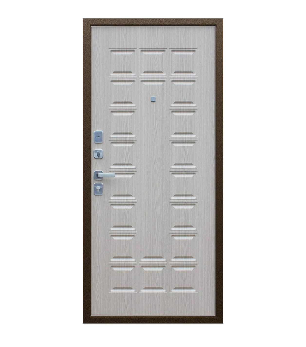 Внутри её конструкции есть специальный слой (как «перемычка»), который разделяет холодный внешний металл и тёплый внутренний. Благодаря этому дверь не покрывается инеем и на ней не появляется конденсат.